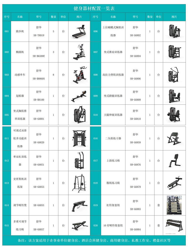 健身器材配置说明∶