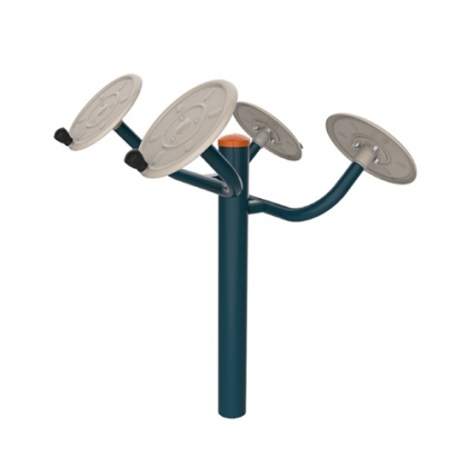双腿呈马步,双手握压转轮表面,向相同或相反方向转动