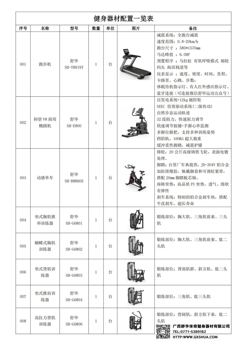1.快盈VIIIV9+智能跑步机SH-T8919T*5台-V9+采用全跑台减震设计,为跑者提供舒适的落脚地感和稳定的跑步支撑,良好的缓冲防护,降低膝关节受伤风险。商用大跑台,为跑者提供从容奔跑空间,180kg承载力,580*1570纯跑台面积,满足专业健身需求。V9+采用F级商用马达,6HP峰值马力,20km/h最高速度,提供源源不断的动力。V9+内置健身直播软件,每周提供直播课程,内含大量专业线上健身点播课程,可为健身房不同人群提供多样化健身课程服务。V9+搭载全新跑步姿态分析系统,提供五大步态数据,为跑者提供综合评估及训练建议,帮助跑者调整优化跑姿,让运动更科学高效。3D竞赛软件,画面如同VR游戏效果,提供训练及竞赛模式,线上竞赛模式,可联动不同单位及公司,不同健身房之间健身爱好者,打造职工健身文化,促进交流。