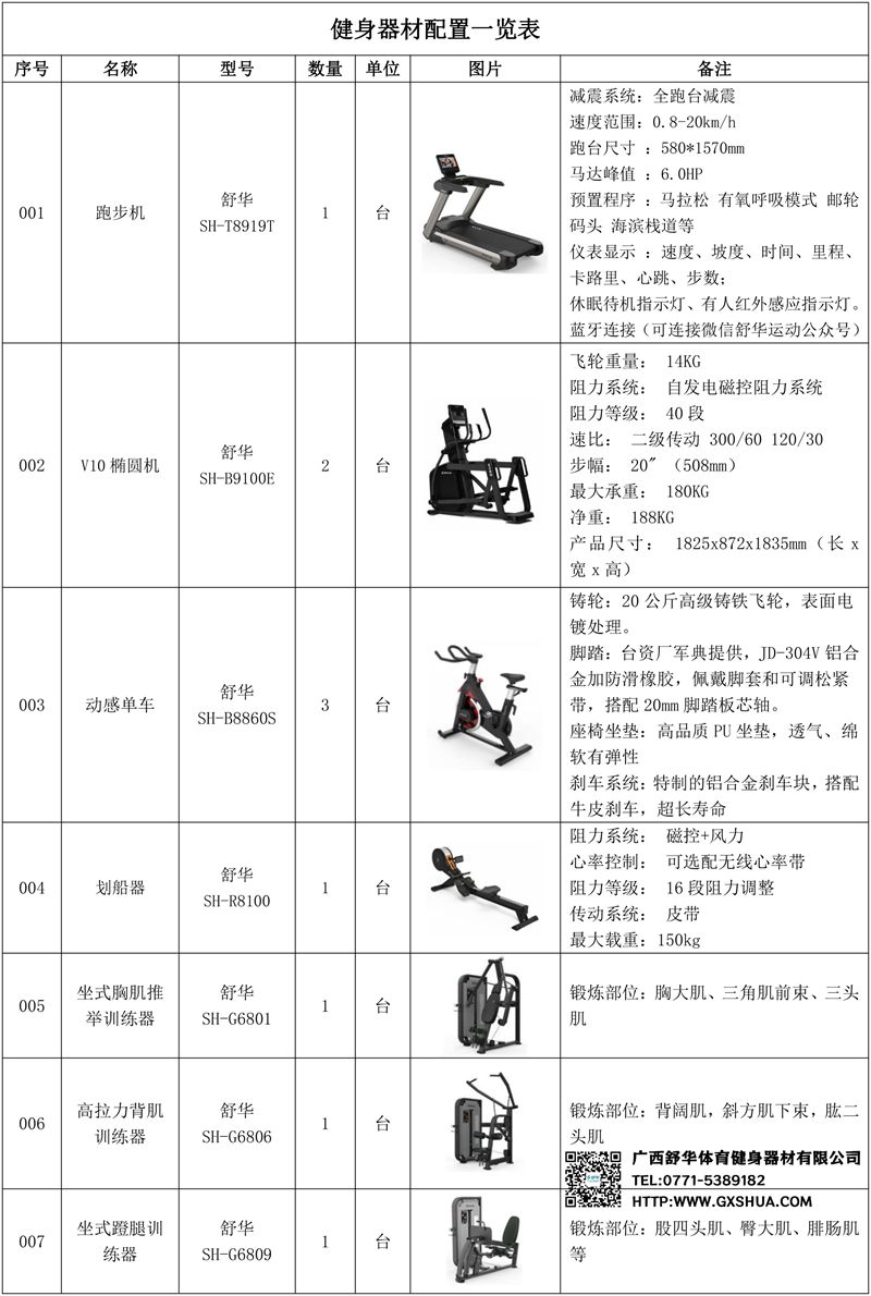 1.快盈VIIIV9+智能跑步机SH-T8919T*4台-V9+采用全跑台减震设计,为跑者提供舒适的落脚地感和稳定的跑步支撑,良好的缓冲防护,降低膝关节受伤风险。商用大跑台,为跑者提供从容奔跑空间,180kg承载力,580*1570纯跑台面积,满足专业健身需求。V9+采用F级商用马达,6HP峰值马力,20km/h最高速度,提供源源不断的动力。V9+内置健身直播软件,每周提供直播课程,内含大量专业线上健身点播课程,可为健身房不同人群提供多样化健身课程服务。V9+搭载全新跑步姿态分析系统,提供五大步态数据,为跑者提供综合评估及训练建议,帮助跑者调整优化跑姿,让运动更科学高效。3D竞赛软件,画面如同VR游戏效果,提供训练及竞赛模式,线上竞赛模式,可联动不同单位及公司,不同健身房之间健身爱好者,打造职工健身文化,促进交流。