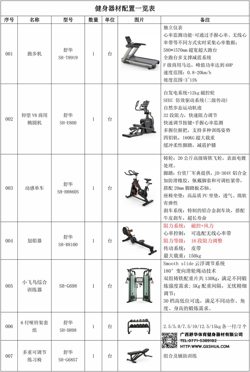 1.快盈VIIIV9智能跑步机SH-T8919*1台-独立仪表-简洁大气,全新外观设计,健康运动新选择;心率监测功能,可通过手握心率、无线心率带等不同方式实时采集心率数据;580*1570mm超宽超大跑台-跑感舒适,跑台整体安全稳定;全跑台多支撑减震平台,保证跑台超强支撑力,达到180kg支撑,满足专业健身房需求。F级商用马达-超强马达,AC 3.0HP 交流,峰值功率达到6HP,F级商用品质。速度范围达到0.8-20km/h;V9跑步机可实现跑台扬升功能,坡度范围-3~15%,满足客户不同的锻炼需求。