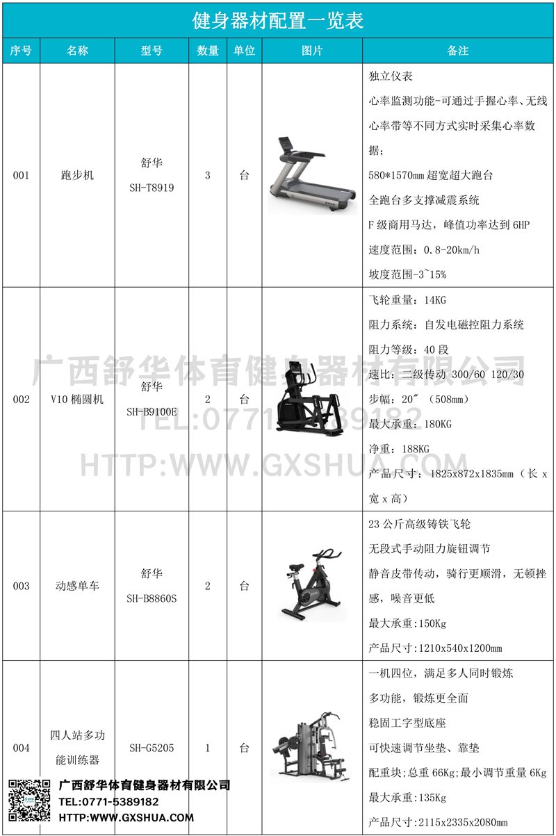 1.快盈VIIIV9跑步机SH-T8919*3台-独立仪表-简洁大气,全新外观设计,健康运动新选择;心率监测功能,可通过手握心率、无线心率带等不同方式实时采集心率数据;580*1570mm超宽超大跑台-跑感舒适,跑台整体安全稳定;全跑台多支撑减震平台,保证跑台超强支撑力,达到180kg支撑,满足专业健身房需求。F级商用马达-超强马达,AC 3.0HP 交流,峰值功率达到6HP,F级商用品质。速度范围达到0.8-20km/h;V9跑步机可实现跑台扬升功能,坡度范围-3~15%,满足不同的锻炼需求。